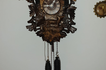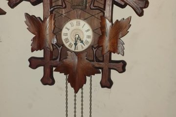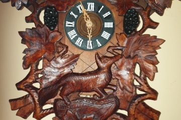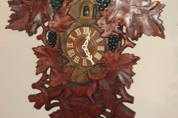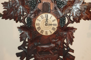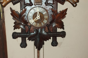 Duża rzeźbiona w drewnie kukułka z lisem – mechanizm niemiecki REGULA 34, – długość wahadła 28,5 cm, – wymiary rzeźby z koroną 70 cm , szerokość w najszerszym miejscu 45 cm, – mechanizm zegara sprawny nowy, – mechanizm jest 8 Więcej…