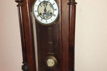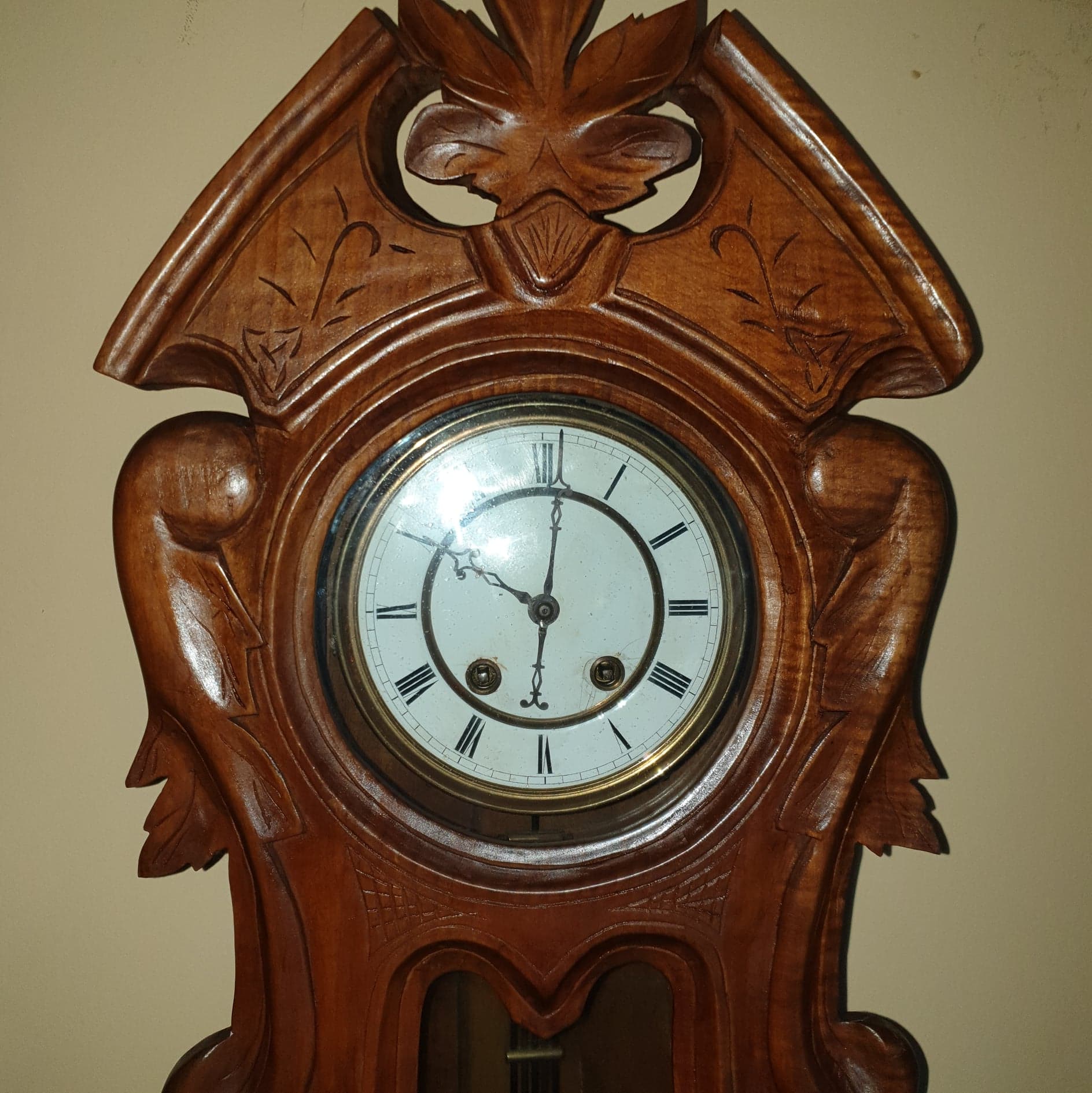Zegar nakręcany mechanizm pełna płyta, rzeźba tzw. „małe skrzypce” wymiary 75cm x 30cm CENA: 1500 zł